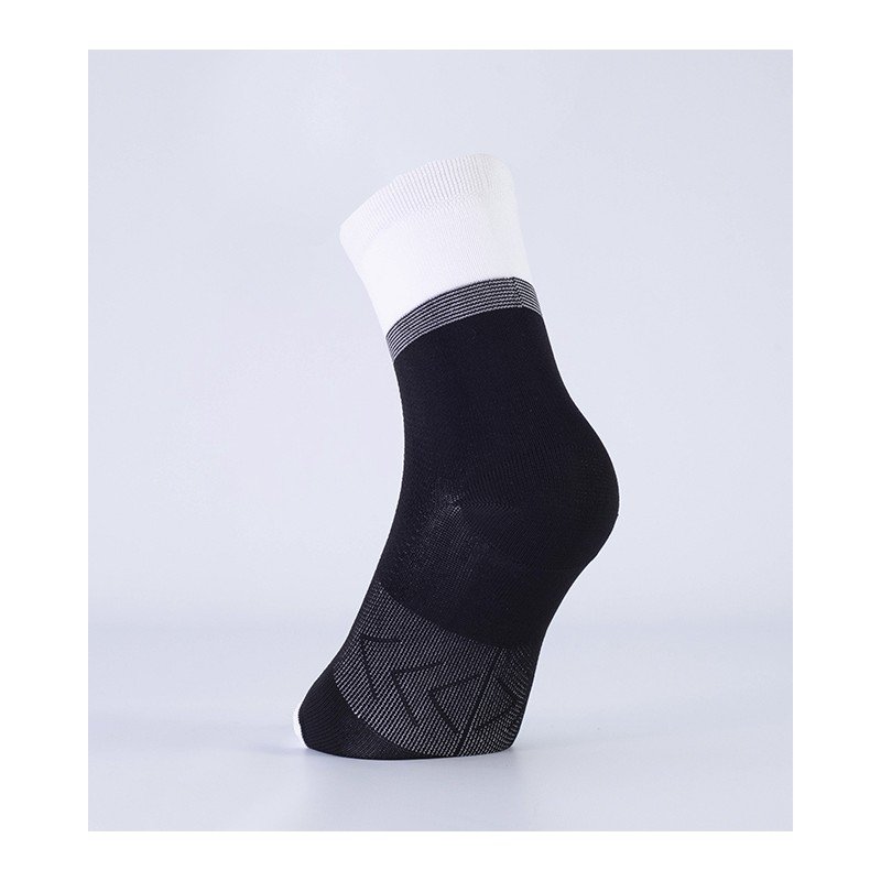 Puño doble elastizado, tejido liso, banda elástica en el pie para mejor sujeción, zona de ventilación en caña y pie para mantenerlo seco. Costura de puntera extra plana, talón y puntera reforzados. Ajuste y calce perfectos gracias al agregado de spandex. Secado rápido gracias a su composición.